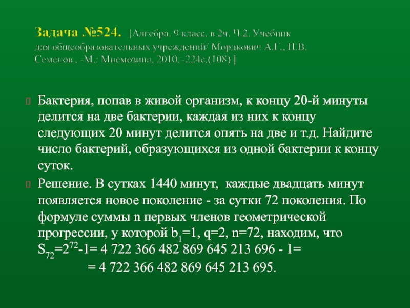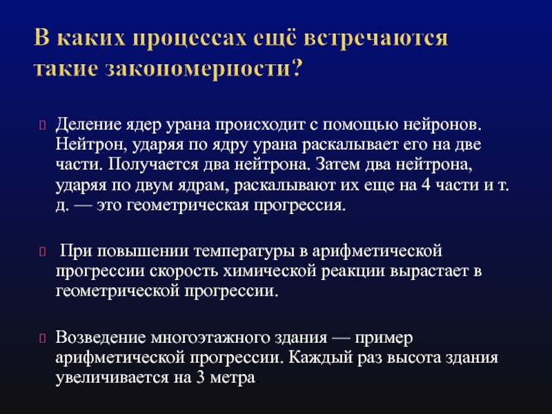 Обнаружили, что интенсивное размножение бактерий в геометрической прогрессии широко применяется в пищевой промышленности, в фармакологии, в медицине, в сельском и коммунальном хозяйствах, в банковских расчетах (начисление сложных процентов).