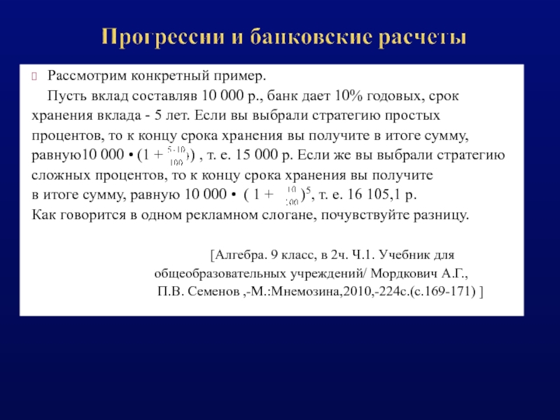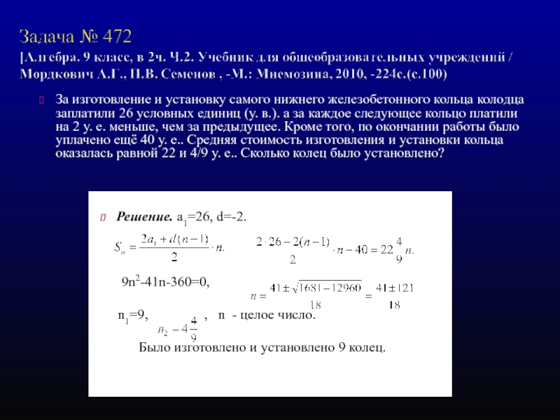 Слайд 10Алгебра. 9 класс, : Учебник для общеобразовательных учреждений / Макарычев Ю.Н.,