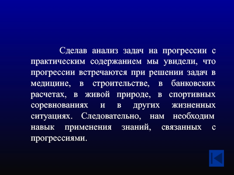 уроках математики мы много раз слышали о том, что математика – наука очень древняя и возникла она из практических нужд человека. Видимо, и прогрессии имеют определенное практическое значение.