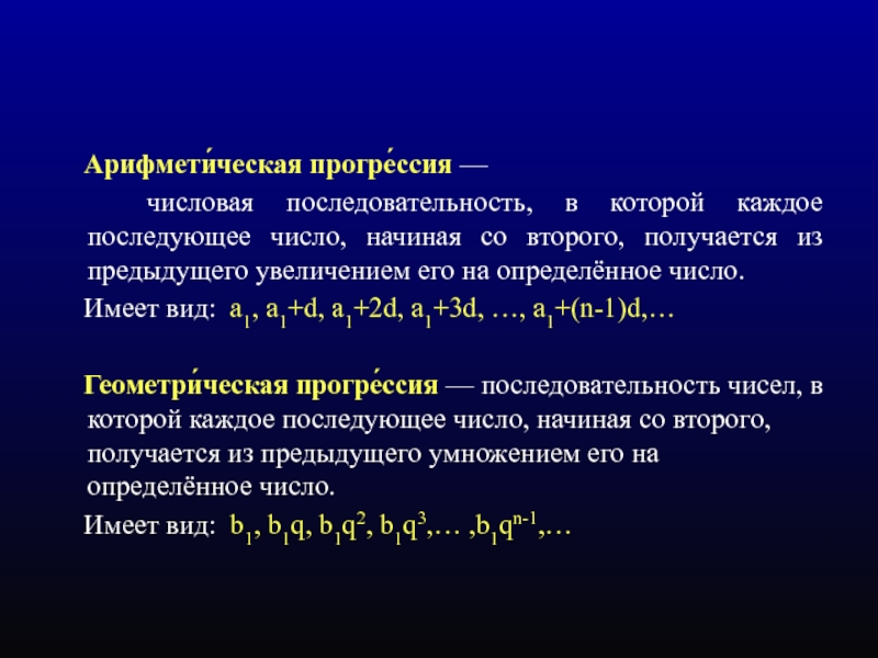 Слайд 11 Арифмети́ческая прогре́ссия —