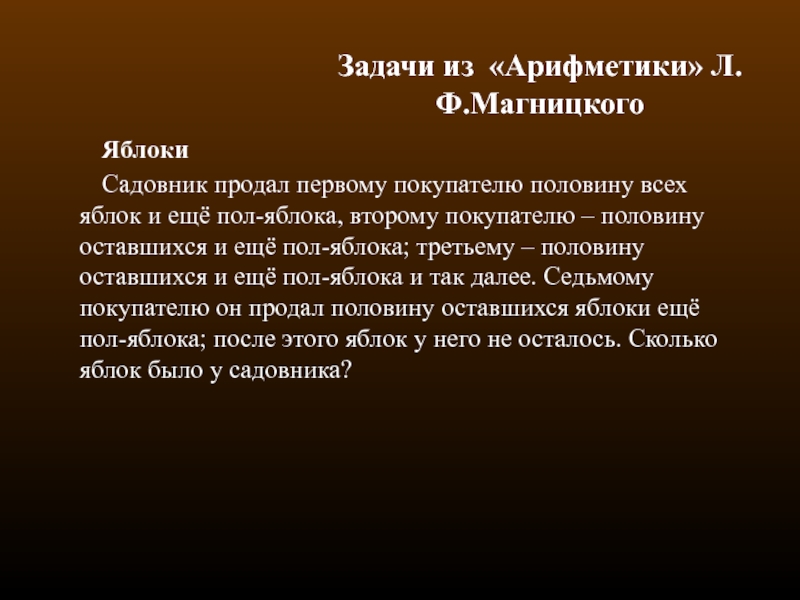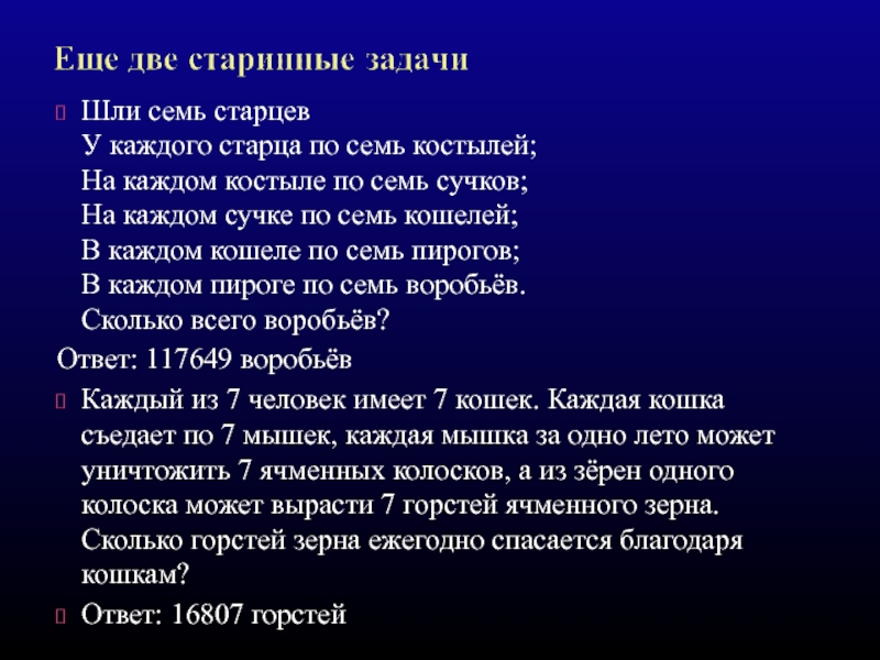 Это задача из «Сборника старинных занимательных задач по математике» Игнатьева Е.И.