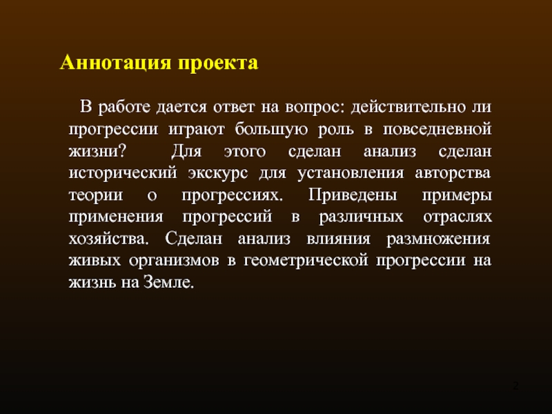 Слайд 2 В работе дается ответ на вопрос: действительно ли прогрессии