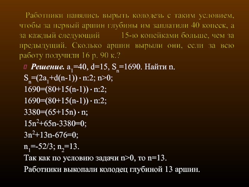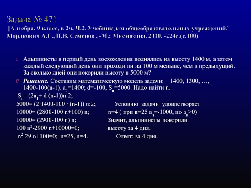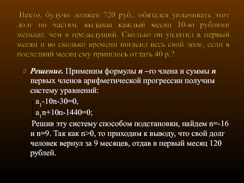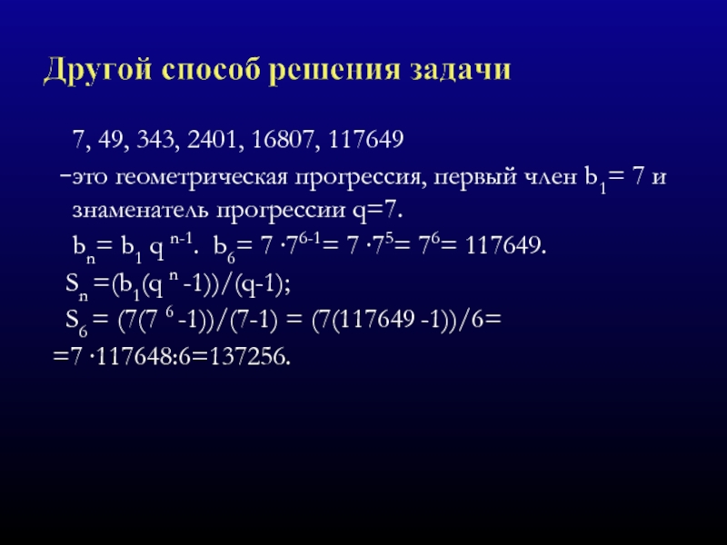 Слайд 133Эту задачу можно решить по-другому, используя формулу сумму n первых членов