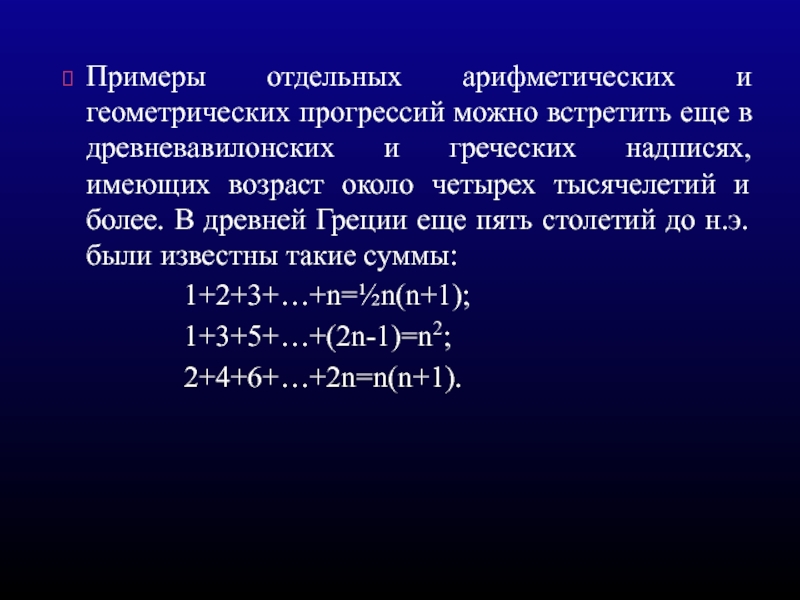 Слайд 137Установили, что сами по себе прогрессии известны так давно, что нельзя