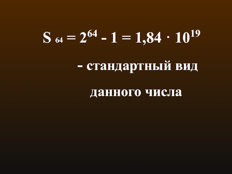 Слайд 128 S 64 = 264 - 1 = 1,84