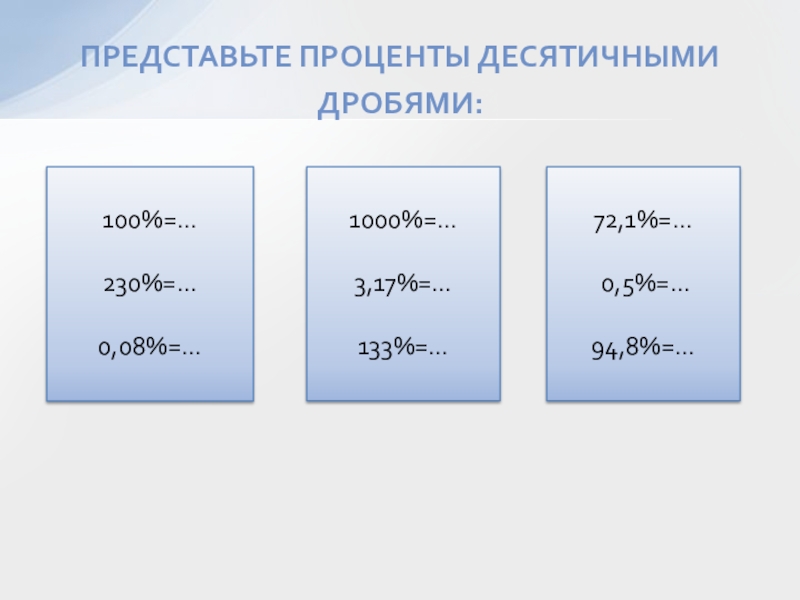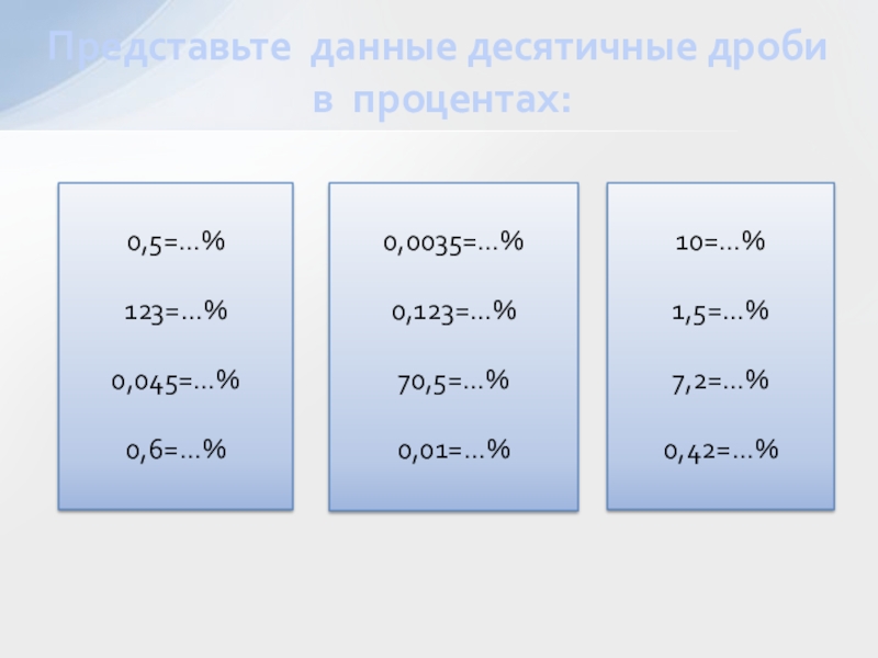 Проценты записать десятичной дробью;