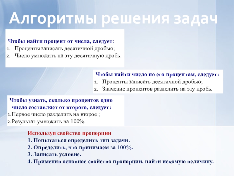 Чтобы найти число по его процентам, следует: