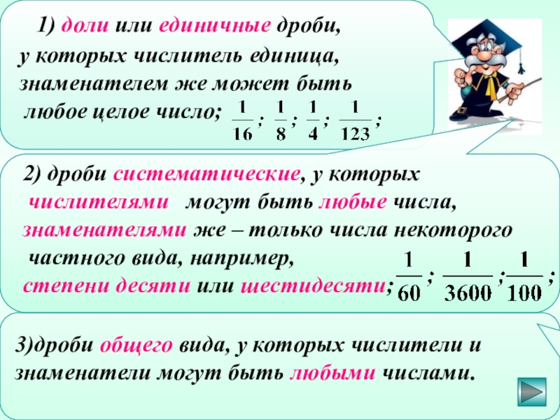 3)дроби общего вида, у которых числители и знаменатели могут быть любыми числами.