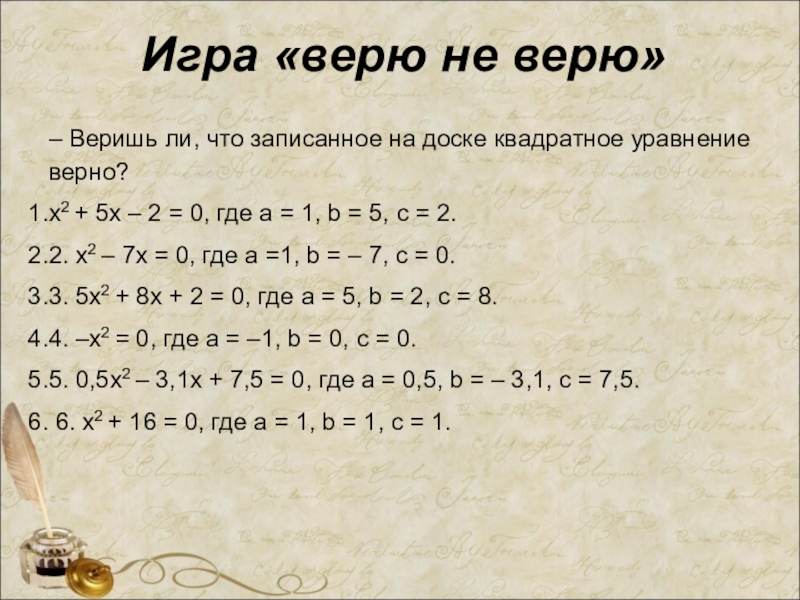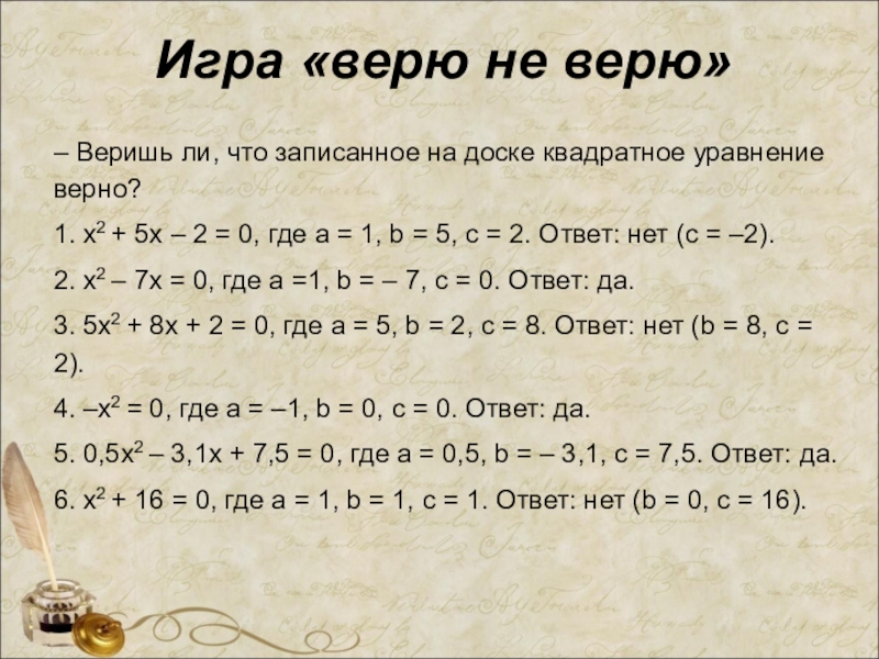– Какие квадратные уравнения