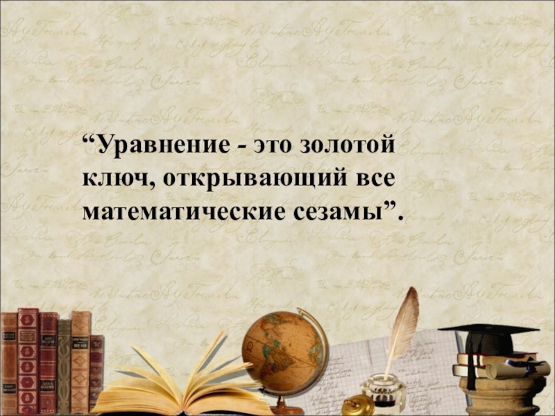 Слайд 11“Уравнение - это золотой ключ, открывающий все математические сезамы”.
