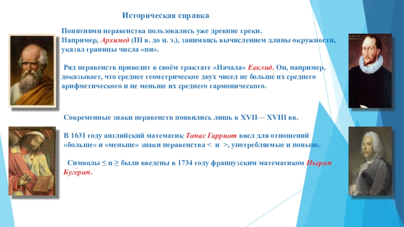 Современные знаки неравенств появились лишь в XVII— XVIII вв.