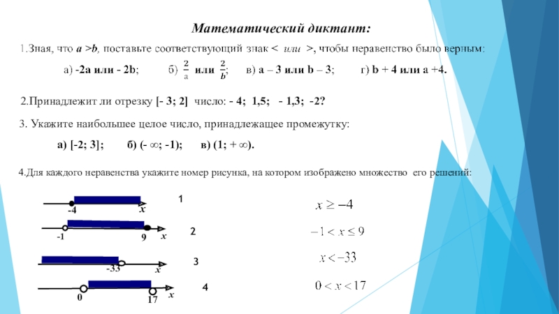 4.Для каждого неравенства укажите номер рисунка, на котором изображено множество его решений: