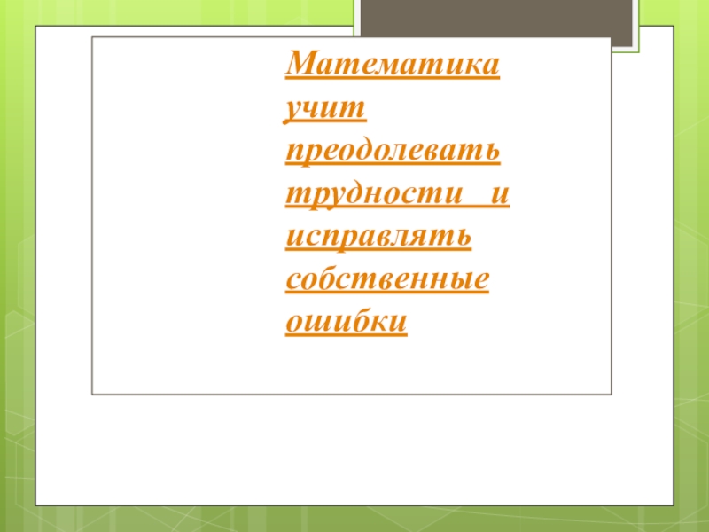 Слайд 2Математика учит преодолевать трудности и исправлять собственные