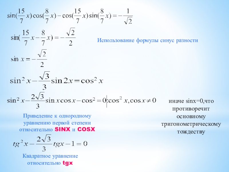 иначе sinx=0,что противоречит основному тригонометрическому тождеству
