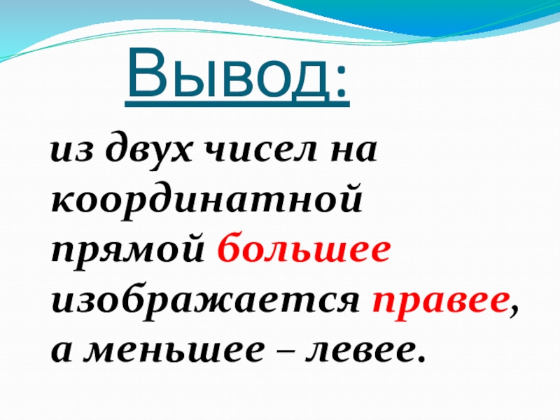 Вывод:  из двух чисел на координатной прямой большее изображается правее,