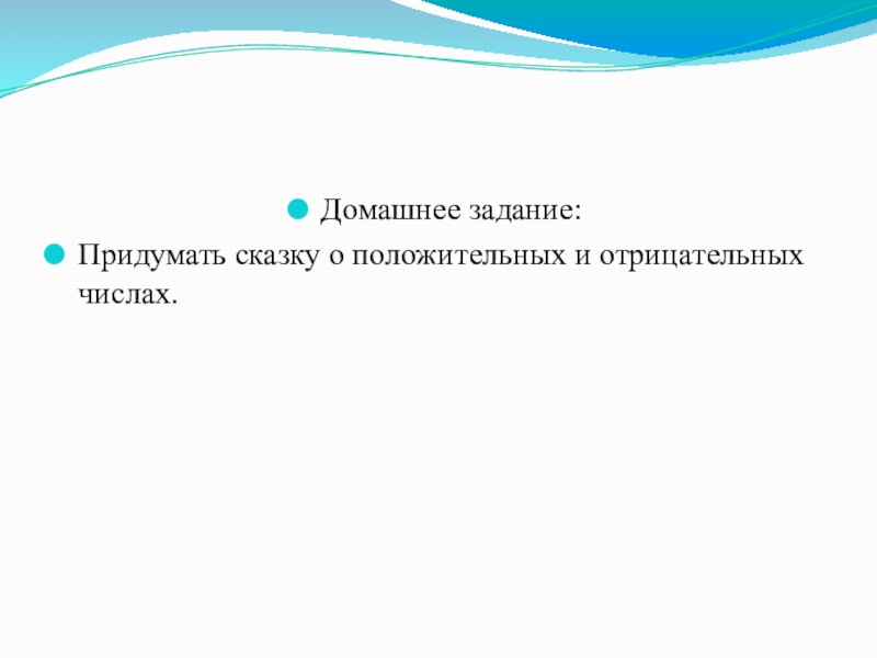Домашнее задание:Придумать сказку о положительных и отрицательных числах.