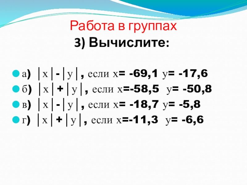 Работа в группах 3) Вычислите:а)
