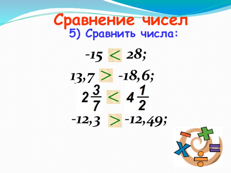 5) Сравнить числа: