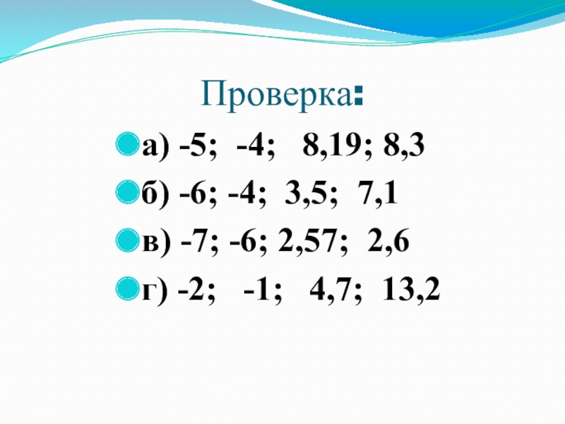 Проверка: а) 25;  56;  45,7 б) -18;  -1,3;  -93 в) 25; -18; 56;