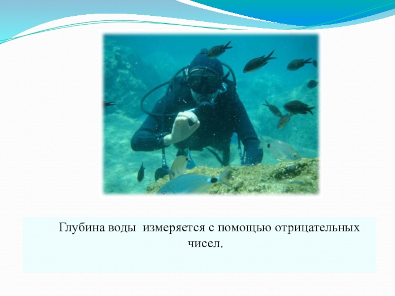 Слайд 20 Глубина воды измеряется с помощью отрицательных чисел.
