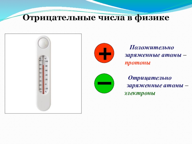 Слайд 21Отрицательные числа в физике