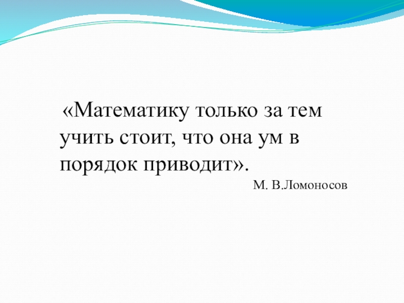 «Математику только за тем учить стоит, что она ум в порядок приводит». М. В.Ломоносов