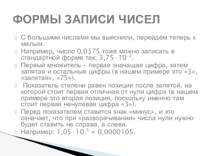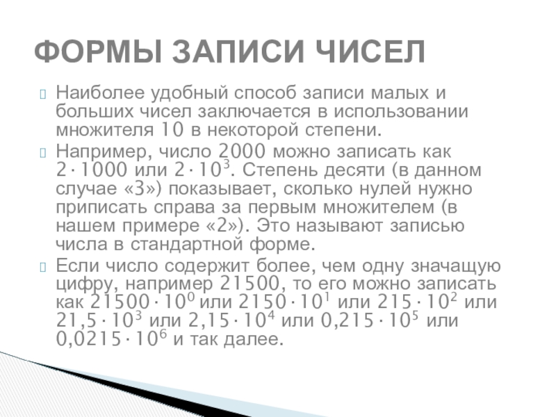 ФОРМЫ ЗАПИСИ ЧИСЕЛ