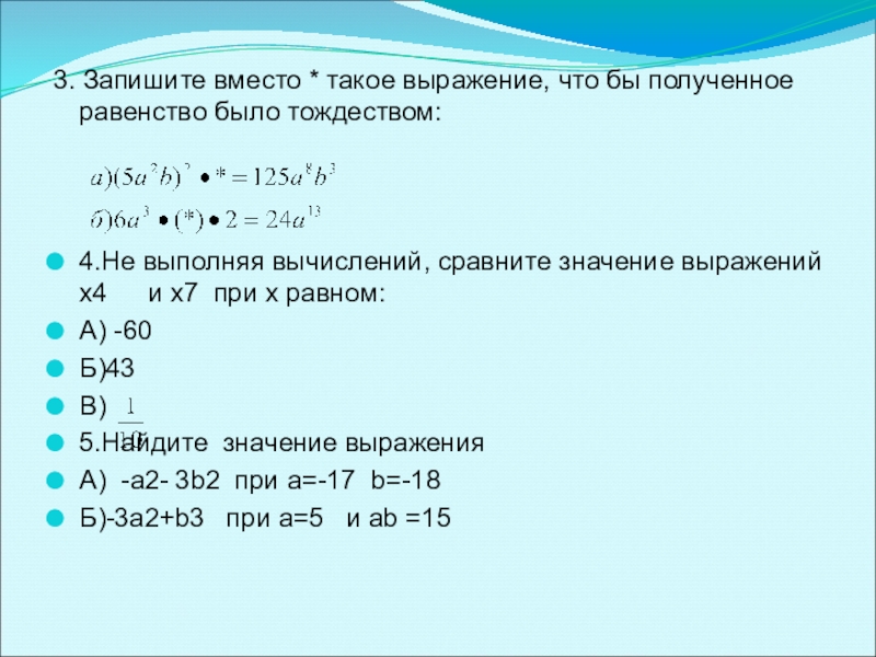4. Действие, которое используют при умножении степеней с одинаковыми основаниями.