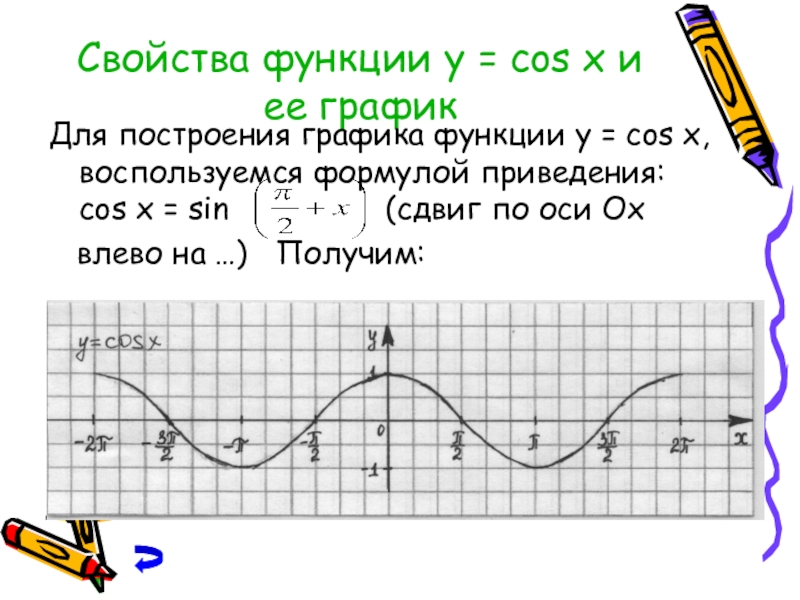 функции y = cos x, воспользуемся формулой приведения: cos x = sin (сдвиг по оси Ох