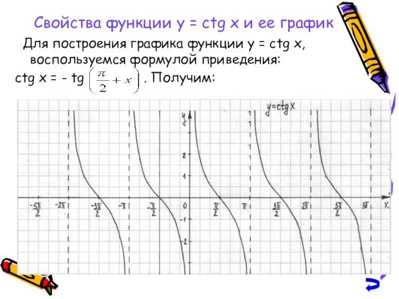 Свойства функции y = ctg x и ее график Для построения графика функции y = ctg x,