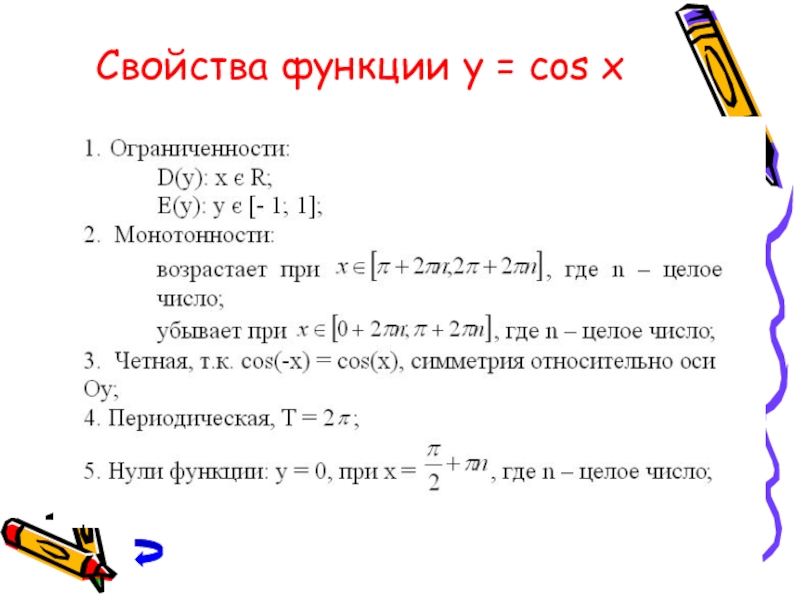 Презентация, доклад по теме: Свойства и графики тригонометрических функций