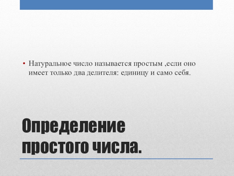 Определение простого числа.Натуральное число называется простым ,если оно имеет только два делителя: единицу и само себя.