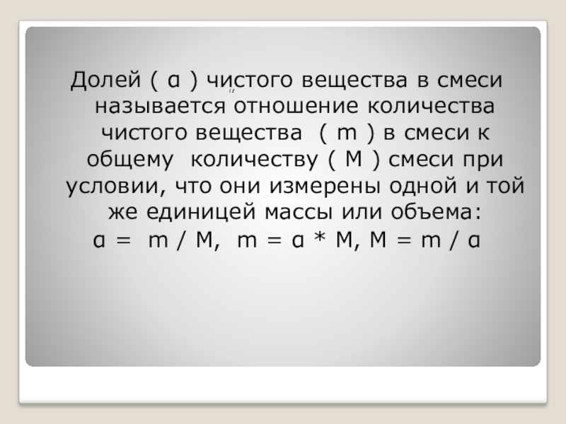 Долей ( α ) чистого вещества в смеси называется отношение количества