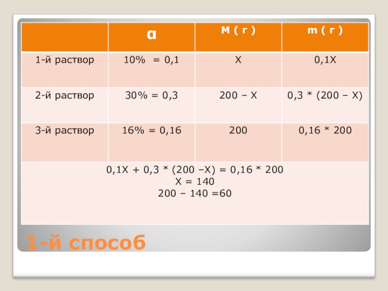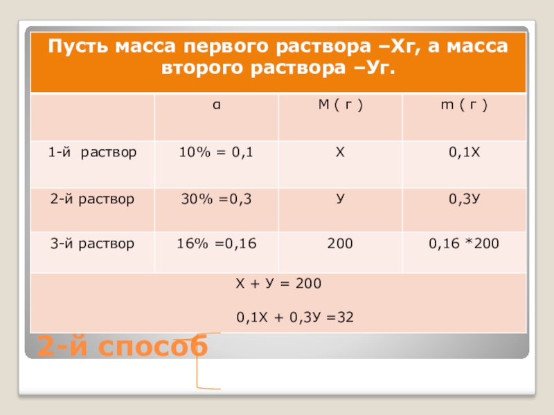 В правой – разности процентных содержаний имеющихся растворов и полученной смеси