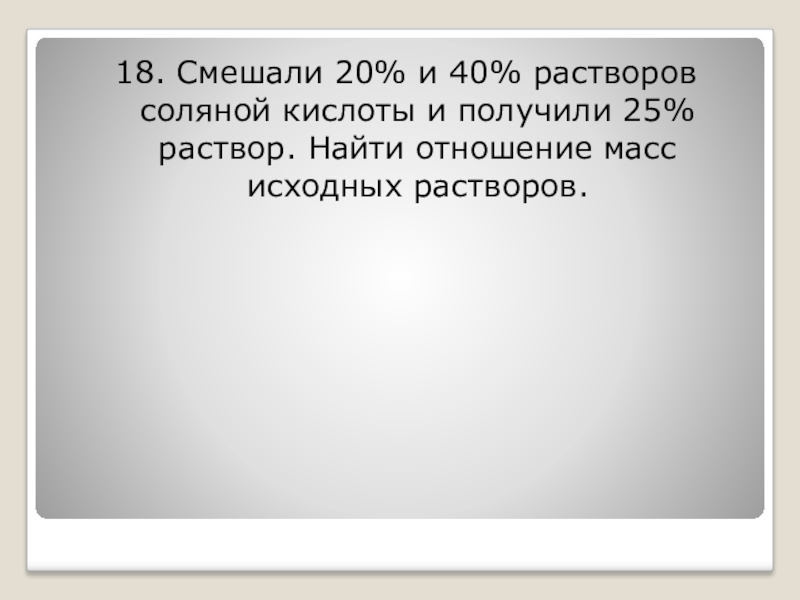 18. Смешали 20% и 40% растворов соляной кислоты и получили 25%