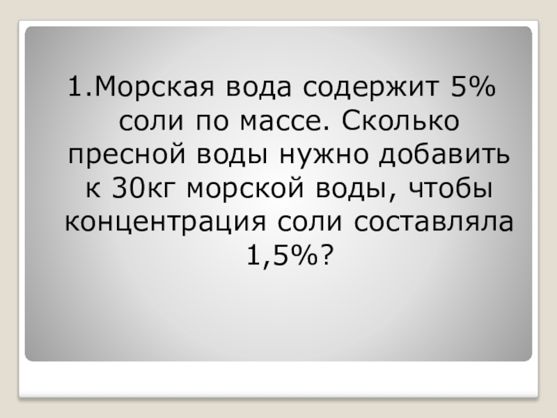 1.Морская вода содержит 5% соли по массе. Сколько пресной воды нужно