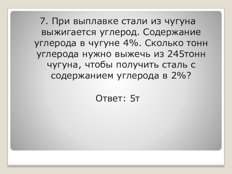 7. При выплавке стали из чугуна выжигается углерод. Содержание углерода в