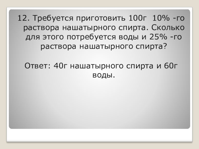 12. Требуется приготовить 100г 10% -го раствора нашатырного спирта. Сколько для