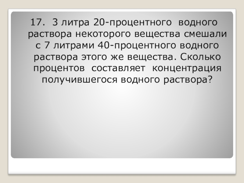 17. 3 литра 20-процентного водного раствора некоторого вещества cмешали с 7