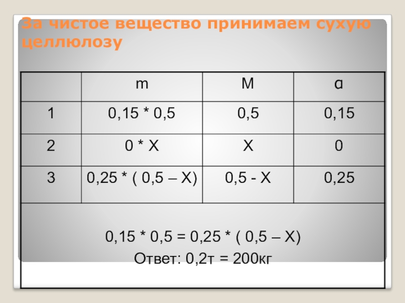 Слайд 11За чистое вещество принимаем сухую целлюлозу