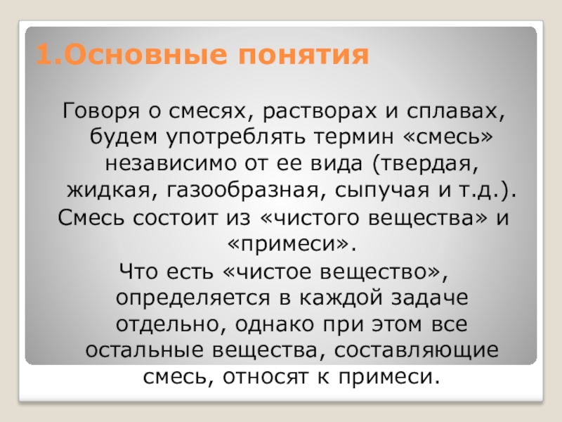 Говоря о смесях, растворах и сплавах, будем употреблять термин «смесь»
