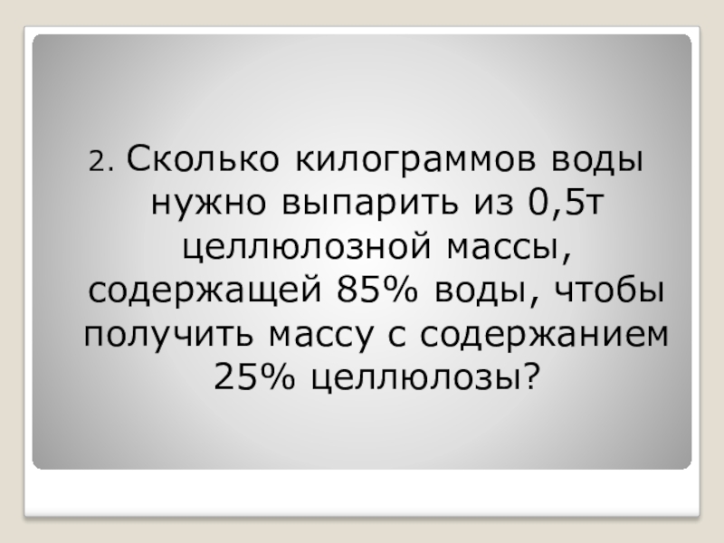 2. Сколько килограммов воды нужно выпарить из 0,5т целлюлозной массы, содержащей
