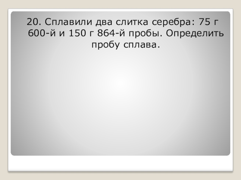 20. Сплавили два слитка серебра: 75 г 600-й и 150 г
