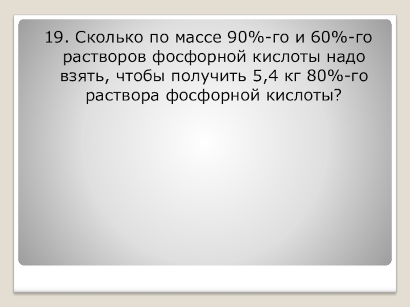 19. Сколько по массе 90%-го и 60%-го растворов фосфорной кислоты надо