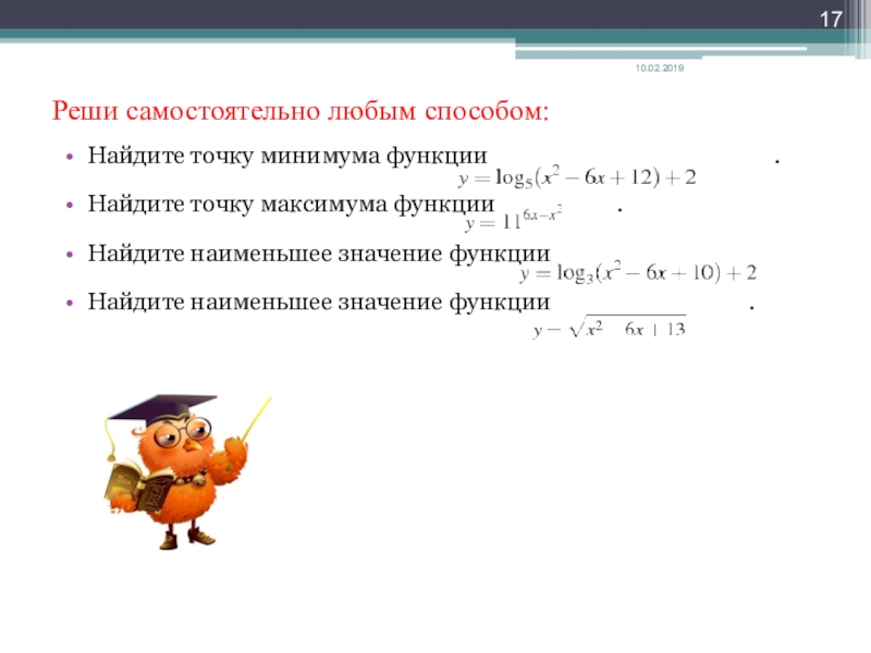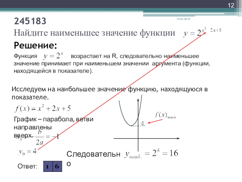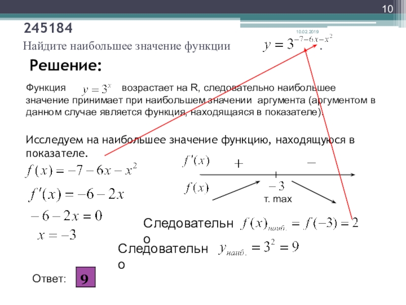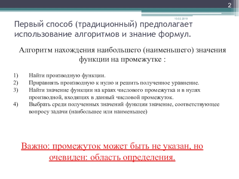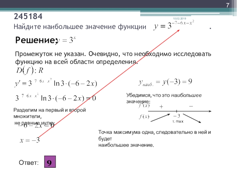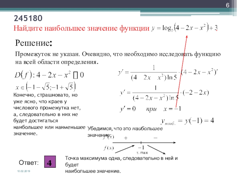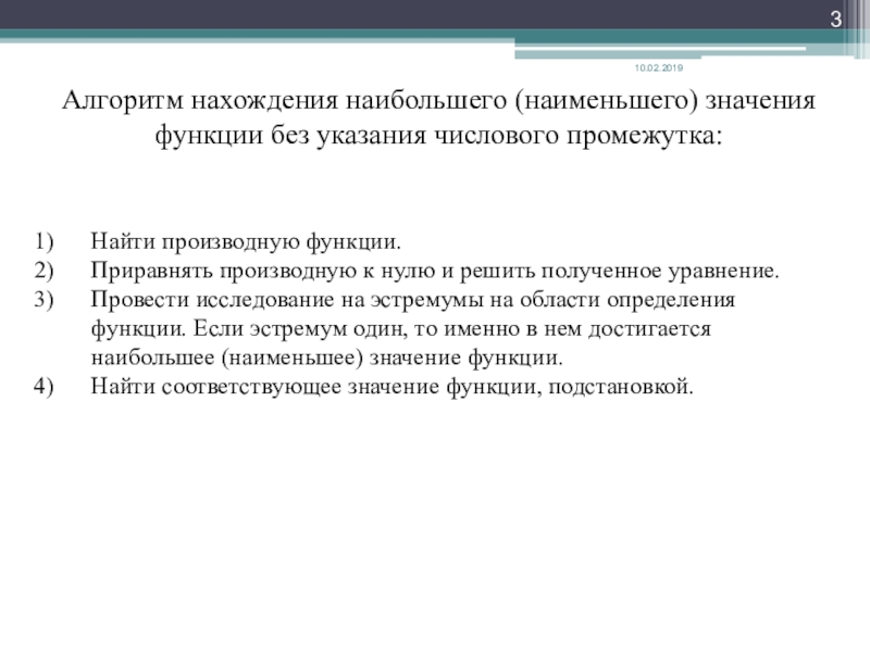 Выбрать среди полученных значений функции значение, соответствующее вопросу задачи (наибольшее или наименьшее)