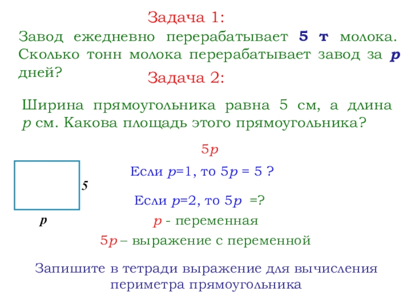 Запишите в тетради выражение для вычисления периметра прямоугольника