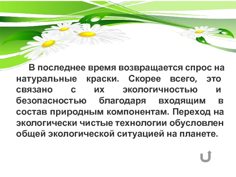Слайд 16 В последнее время возвращается спрос на натуральные краски.