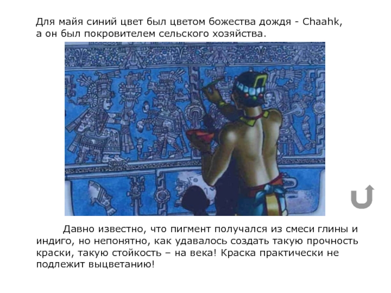 Слайд 25Для майя синий цвет был цветом божества дождя - Chaahk, а