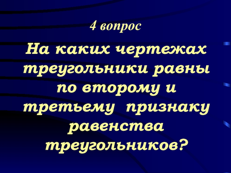 4 вопросНа каких чертежах треугольники равны по второму и третьему признаку равенства треугольников?