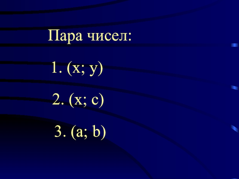 Пара чисел:1. (x; y)2. (x; с)3. (a; b)
